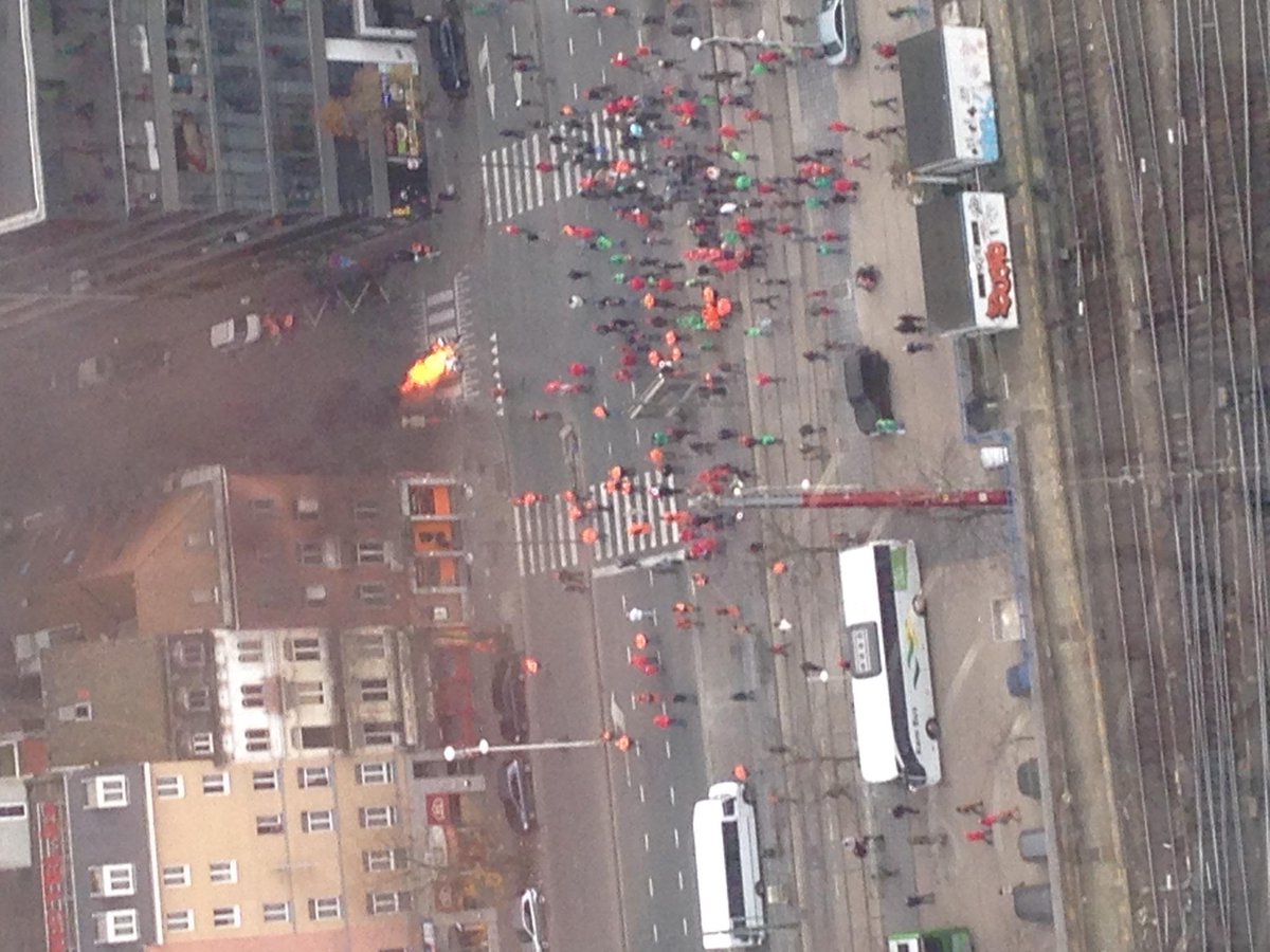 de nmbs gaat extra treinen inleggen om iedereen weer thuis te krijgen. Reactie van de betogers: met stenen smijten naar het hoofdkwartier van de nmbs. echte boerekinkels, die linkse betogers
