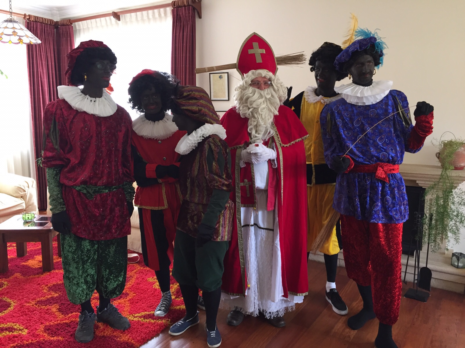 ![]() Ik ga vandaag de sint zijn en mijn pieten zijn zwart. Ook door Nederlanders georganiseerd grotendeels.