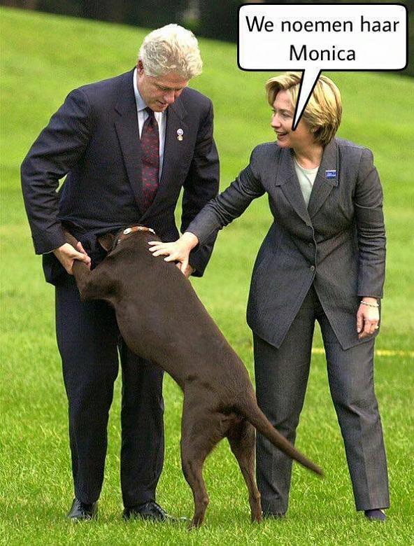 De geruchten over de seksuele voorkeuren van Hillary kennende, denk ik eerder dat Monica dienst gaat doen als kutlikkertje.