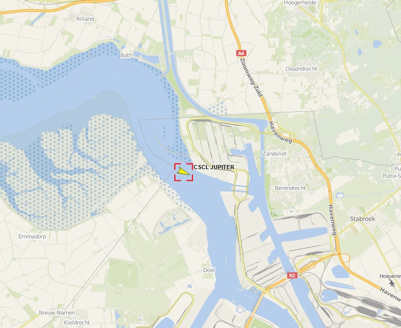 Vesselfinder bevestigt de positie van de CSCL Jupiter.