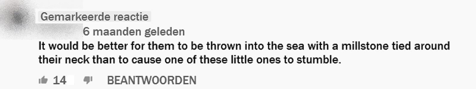 Ik las gewoon tekst , en naar mijn inzicht zette die aan tot moord plegen !! De video die is daarstraks blijkbaar zelfs gewist , dus ook alle reacties !!