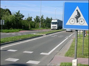 Die haaietanden zijn zelfs niet nodig wetende dat een fietser geen voorrang heeft aan een oversteekplaats. Kijk. Iedereen weet dat een voetganger op een zebrapad voorrang heeft. Ik ben er zeker van dat er mensen zijn die een oversteekplaats voor fietsers beschouwen als een soort zebrapad maar dan wel voor fietsers. |