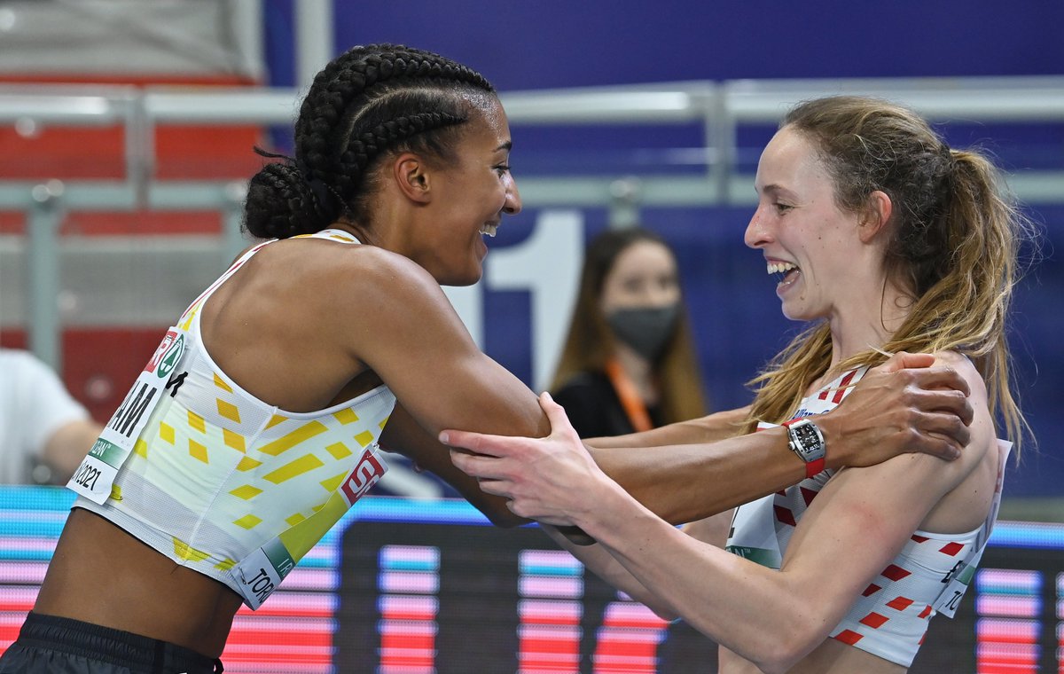 Nafi Thiam heeft haar favorietenstatus volledig waargemaakt en is voor de 2e keer Europees indoorkampioene op de 5-kamp. Ze verbeterde daarbij het Belgisch record van Tia Hellebaut. Verrassender is het zilver van Noor Vidts. De 24-jarige studente had een dijk van een dag met liefst 3 persoonlijke records. https://sporza.be/nl/2021/03/05/nafi...%2Fnl%7Cteaser Laatst gewijzigd door Henri1 : 6 maart 2021 om 08:47. |
