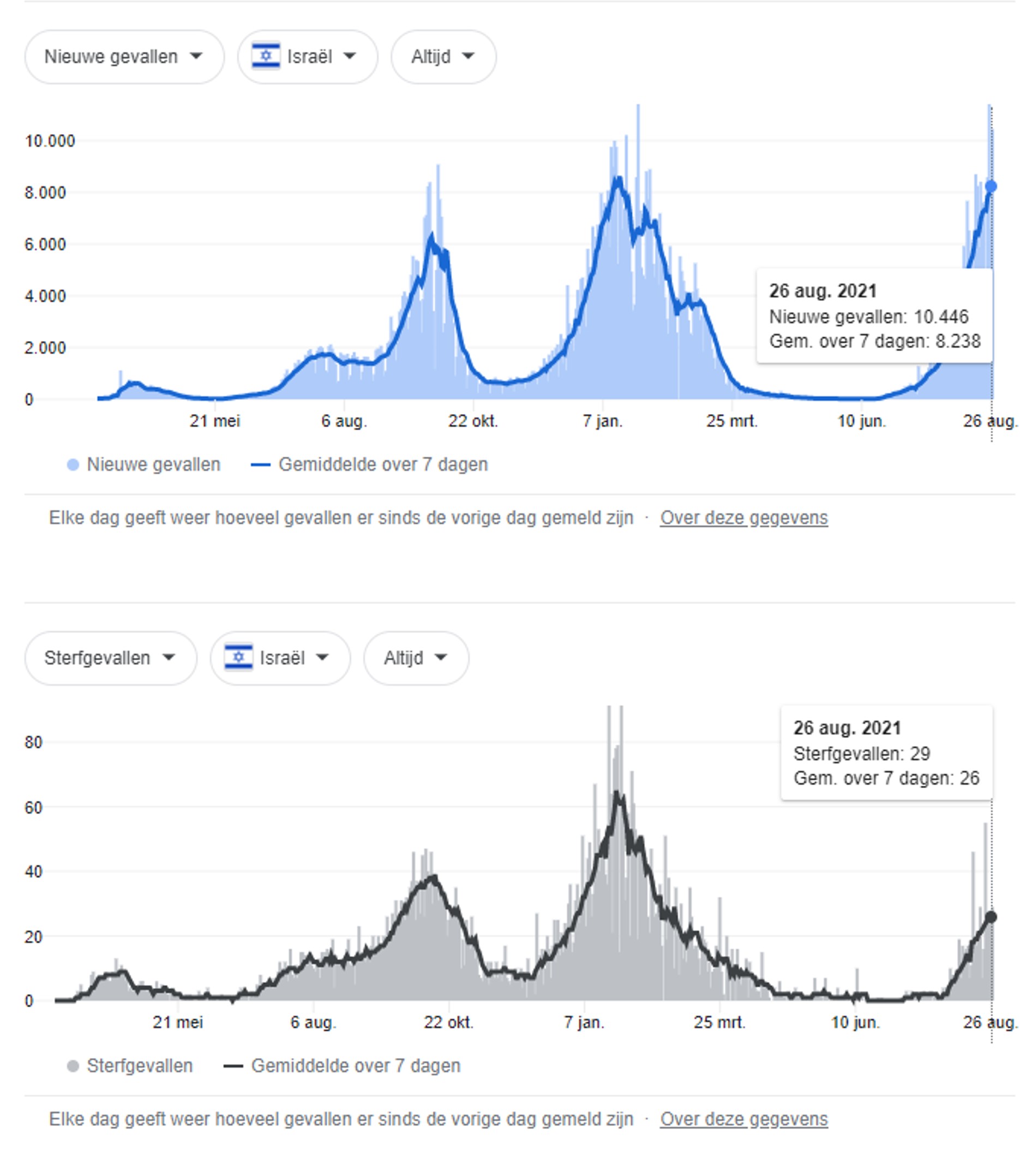 Gevallen nemen toe met het wegnemen van sociale afstand, nieuwe variant, vaccin minder effectief, enz. In ieder geval wijzen de huidige gegevens erop dat zelfs als er doorbraakgevallen zijn onder de volledig gevaccineerde Israëli's, hun infecties zijn minder ernstig dan onder degenen die helemaal geen prikken hebben gehad.
