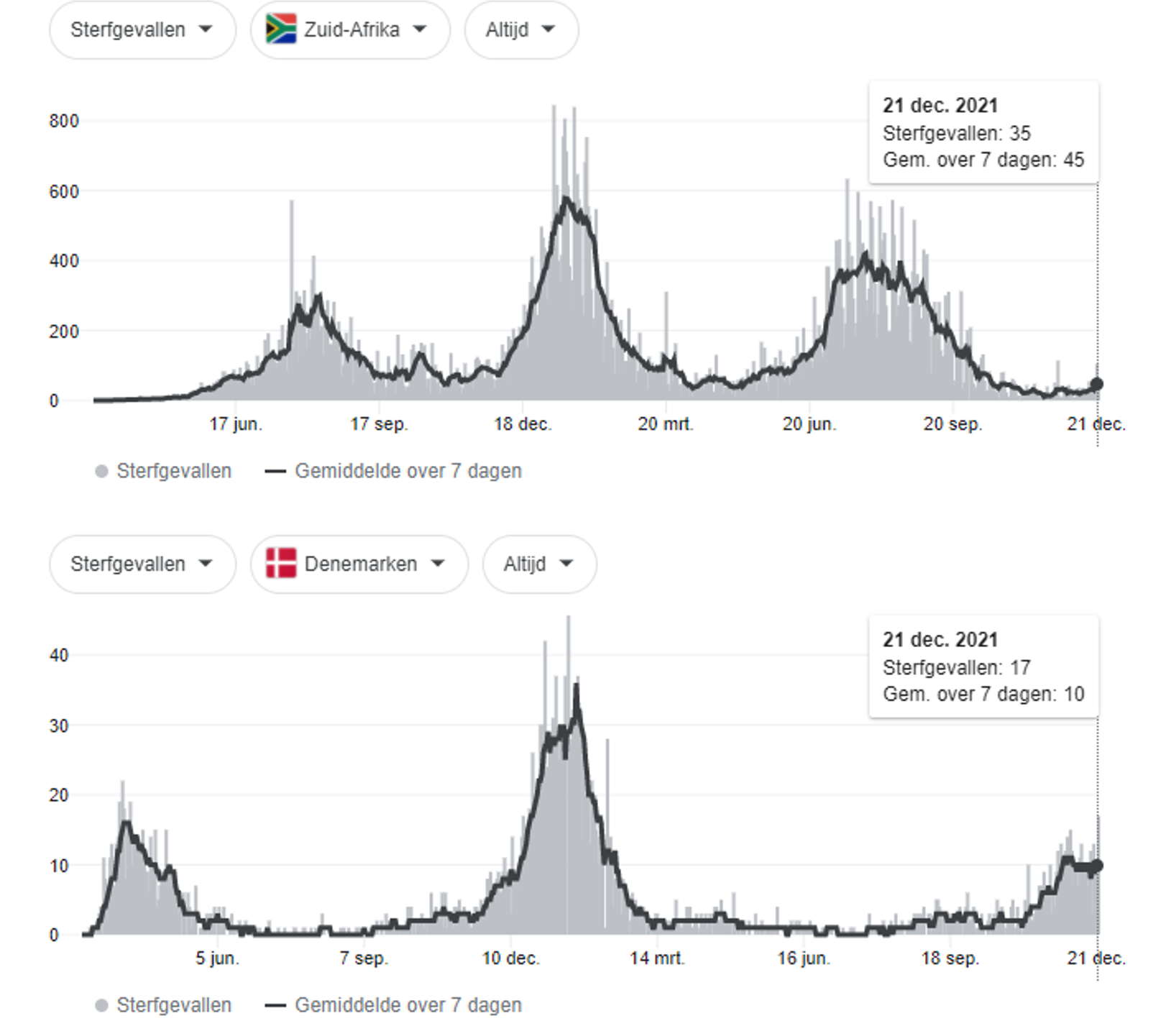 Over het algemeen milder in de realiteit (cijfers van zuid-Afrika, Denemarken, van de EU in het geheel tot nu toe: zie ECDC omikron rapport).