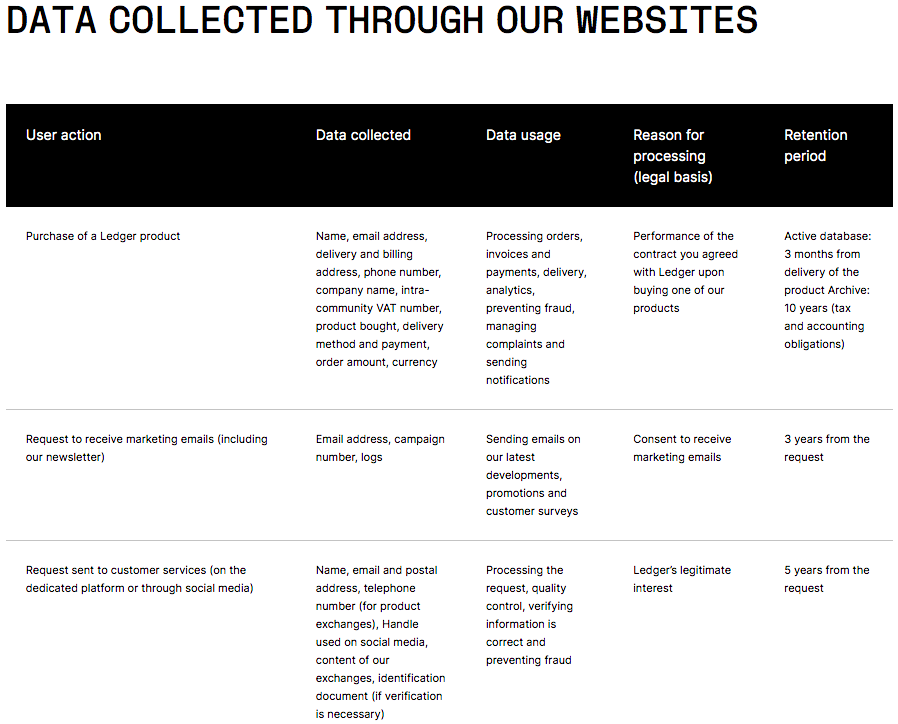 Lees dit eens. Als ik dit allemaal lees, heb ik er geen enkel vertrouwen in dat de overheid hier straks geen invloed op zou hebben. Anonimiteit nougabollen. https://www.ledger.com/privacy-policy ![]()