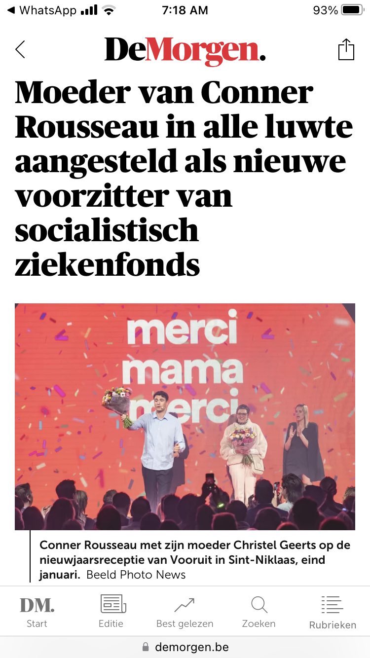 " Geerts was jarenlang burgemeester en schepen in Sint-Niklaas, maar na de verkiezingen van 2018 belandden de socialisten er in de oppositie. Nu is ze vooral bekend als moeder van Vooruit-voorzitter Conner Rousseau. In januari hield Geerts het oppositiewerk voor bekeken en verliet ze de actieve politiek. Op de nieuwjaarsreceptie van Vooruit werd ze nog uitgebreid in de bloemetjes gezet door haar zoon. “Merci mama voor je inzet voor de partij en de politiek”, klonk het toen. Wat daar niet werd gezegd, is dat Geerts sinds oktober al een nieuwe functie had opgenomen in de socialistische zuil, als voorzitter van het Nationaal Verbond van Socialistische Mutualiteiten. " " Conner Rousseau kan het erg goed vinden met grote baas Paul Callewaert, de secretaris-generaal van het ziekenfonds. Precies om die reden vermoedt een andere ingewijde dat de invloed van Rousseau niet onderschat moet worden. “Is het toeval dat Geerts voorzitter wordt? Natuurlijk niet. Conner en Paul zijn heel goede vrienden, zulke dingen worden echt wel doorgesproken, hoor.” Rousseau zelf ontkent dat. De raad van bestuur heeft hem enkel vooraf gepolst of hij een probleem had met de aanstelling van zijn moeder. " https://www.demorgen.be/politiek/moe...ource=facebook Hoeveel patiënten zou "Mama Mateke" reeds behandeld hebben in haar leven? Laatst gewijzigd door Witte Kaproen : 3 maart 2023 om 17:47. |