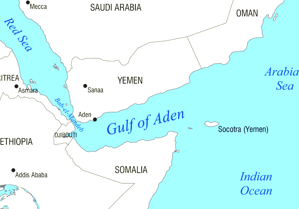 Hoeveel procent van de wereldhandel zou door de smalle zeestraat van de Golf van Aden passeren? De eerste overzeese basis van China is gelegen in Djibouti, waar ook het Camp Lemonnier ligt.