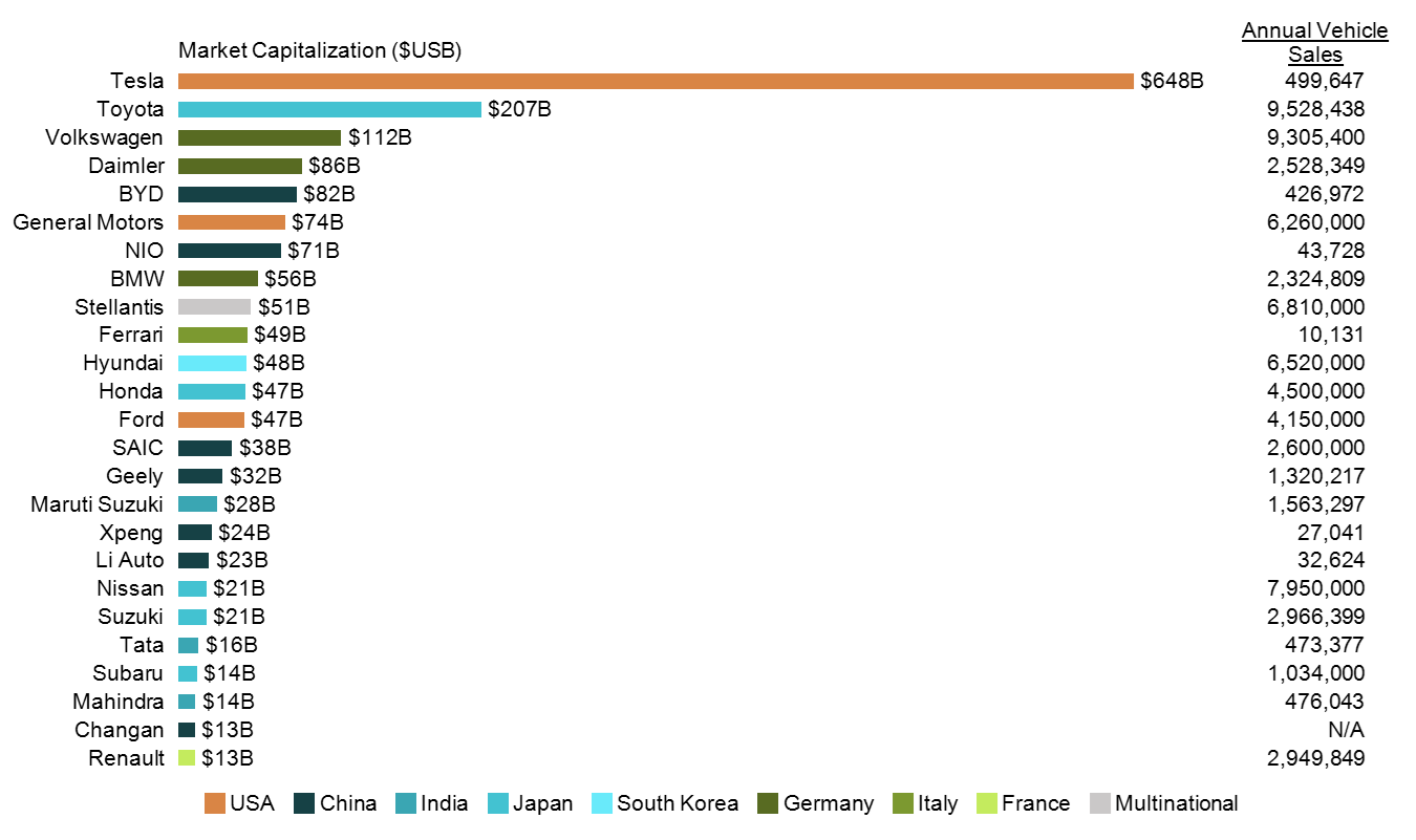 Ondertussen zijn Xaomi (enkel BEV) en BYD (NEV) opgeklommen in de top 5 van waardevolste automerken (Market Cap).