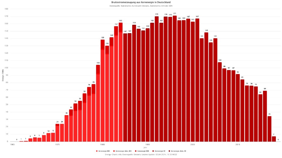 Duitsland produceerde van 1995 tot 2006 elk jaar tussen 162 TWh en 171 TWh kernenergiestroom, of meer dan de helft TWh aan kernenergie wat Frankrijk nu nog jaarlijks heeft (320 TWh in 2023).
