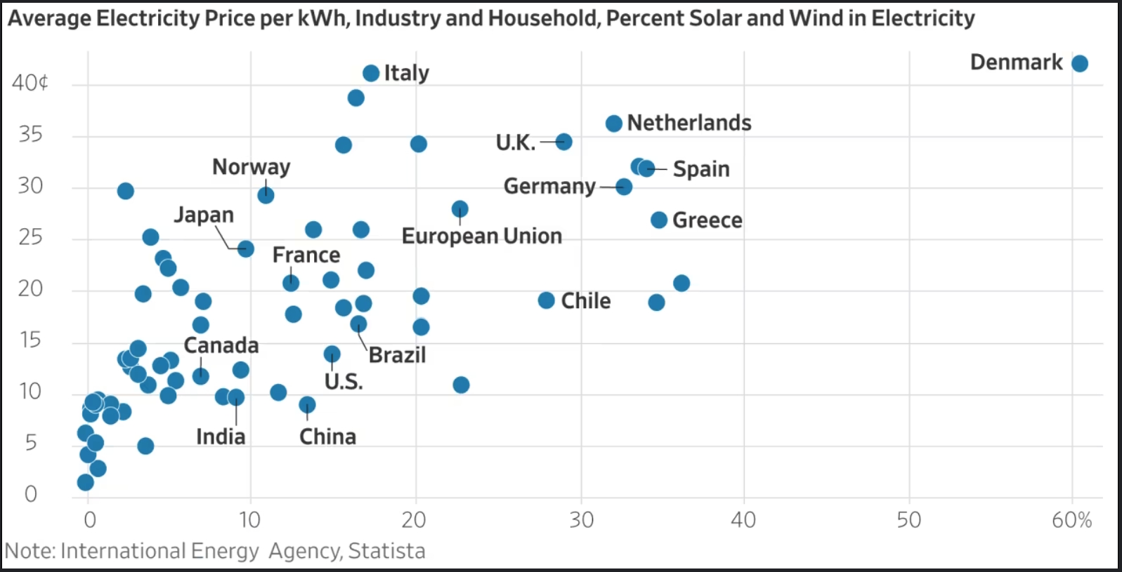 De realiteit vandaag de dag is dat hoe meer wind en PV in de stroommix, hoe duurder de elektriciteitsprijs voor de eindgebruiker. |