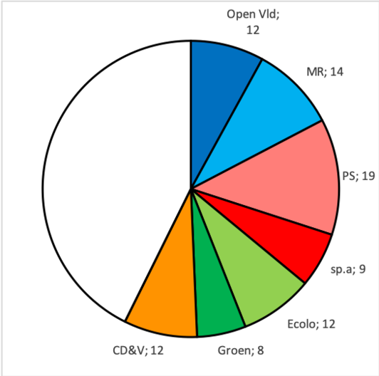 Tov van verkiezingen 2014: Groen + 2 zetels (totaal 8) Ecolo + 7 zetels (totaal 13) https://nl.wikipedia.org/wiki/Regering-De_Croo https://nl.wikipedia.org/wiki/Belgis...kiezingen_2019