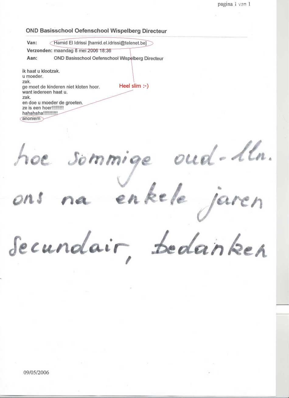 http://www.geenstijl.nl/mt/archieven/images/mail.html Waarom zou die Ahmid El Drissi de oud leraar zijn moeder nu voor 'hoer' uitmaken. Hoe zou dat nu toch kunnen komen?