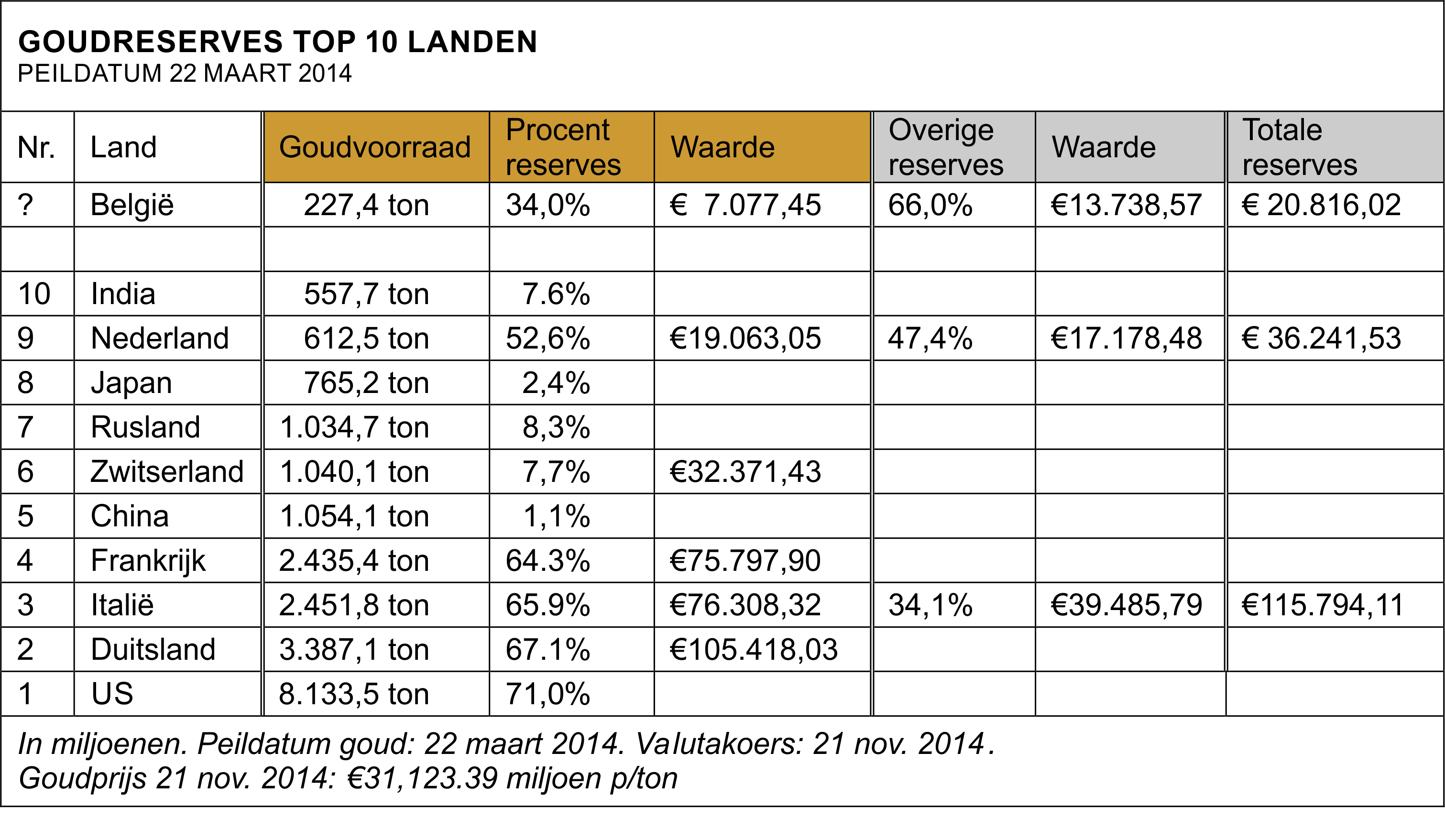 1040,1 ton. Reserves in goud: 7,7% Laatst gewijzigd door Adrian M : 22 november 2014 om 19:25. |