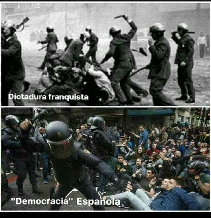 Maar in democratische landen is excessief politiegeweld verboden en wordt dit vervolgd. In Spanje wordt het tegen een deel vd bevolking als politiek wapen georganiseerd en ingezet.