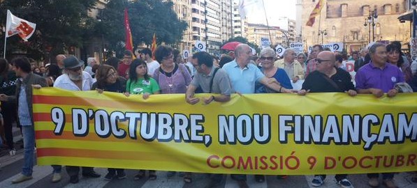Het begint ook te rommelen in Valencia. Vandaag, de Valenciaanse feestdag, eisen de Valenciaanse linkse partijen die mee het bestuur van de regio vormen een hervorming van de fiscaliteit en meer autonomie. De "Comissió Nou d’Octubre" publiceerde recent een manifest voor een "nieuw Valencia", met onder meer eisen voor een nieuw financieringstelsel en een betere samenwerking tussen de Catalaanstalige regio's op vlak van media en cultuur. Diverse partijen, waaronder ook Podemos, ondertekenden dat manifest.