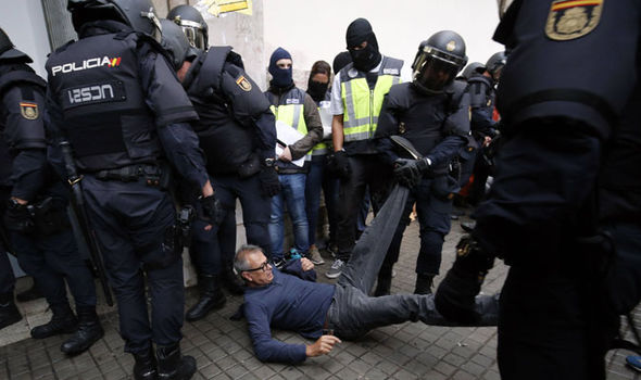 http://www.express.co.uk/news/world/...-result-latest "Spanish Civil Guard police in riot gear burst into a polling station minutes before Catalan regional leader Carles Puigdemont was due to vote in a referendum on Catalan independence from Spain that has been declared illegal by Madrid. Police used axes to smash a window at the sports centre being used as a voting centre and forced open the door in the province of Girona. Live TV pictures showed police with black berets and riot shields fanning out through the voting station, apparently searching for ballot boxes, while would-be voters, fists raised in the air, defiantly sang the Catalan anthem." Laatst gewijzigd door Witte Kaproen : 1 oktober 2017 om 09:17. |