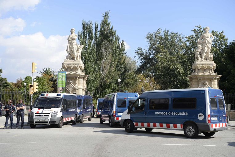 De Mossos staan al paraat om het Catalaans Parlement te verdedigen tegen de Guardia Civil vanavond.