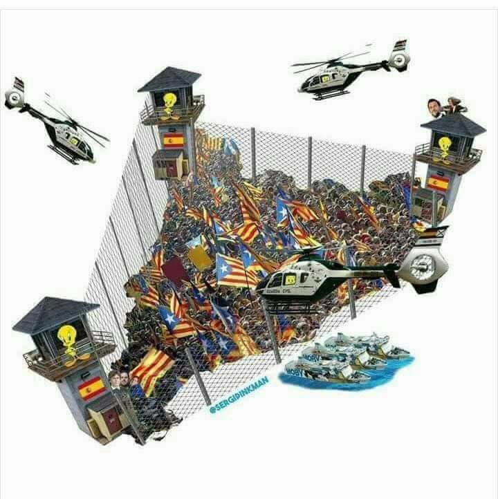 http://www.express.co.uk/news/uk/875...atalunha-video "Catalonia saw a hike in support for the pro-independence movement since the central government in Madrid begun its crackdown on the autonomous region. And LSE Professor Sebastian Balfour said it is more than likely Catalan people will continue to move towards the idea of independence if Prime Minister Mariano Rajoy continues his aggressive strategy to return the rule of law in Catalonia. "He said: "The latest poll, which was published last week, puts the percentage of people polled who support independence to 48.7 per cent whereas three months ago it was 41 per cent. So that figure seems to be creeping up." |