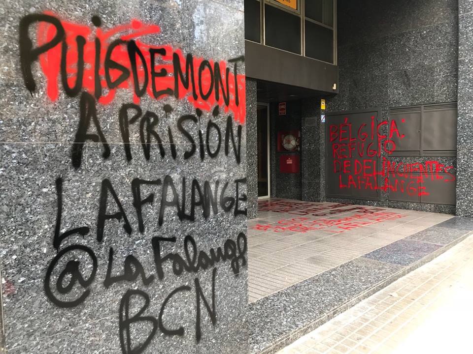 Ondertussen hebben de volgelingen van Franco( La Falange) de ingang van het Belgisch consulaat in Barcelona vol gekladderd.