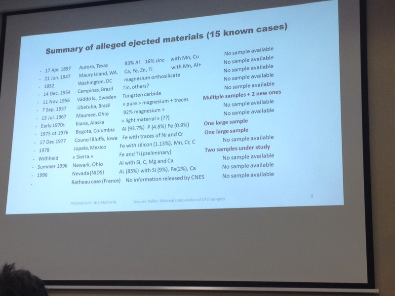 http://ufopartisan.blogspot.com/2017...ufo-study.html ![]() ![]() ook dit is een mysterie: (sample gevonden in 1957!) http://www.nicap.org/reports/ubatubanal.htm Below is a link to a paper written by Professor Peter Sturrock on the Ubatuba material Vallee discusses during the above presentation: In it, he writes, "it has not proved possible to identify where the material was produced." It's also important to note some, if not all, of the materials members of the To The Stars Academy have talked about have never been in the government's hands in the first place so obviously FOIAs will be of no use there. Just because TTSA is talking about something doesn't mean the United States government/military ever had it or that the TTSA organization has it. UPDATE JUNE 12: Hal Puthoff addressed the SSE/IRVA conference a few nights back and went into some detail about UFOs and metamaterials. The full transcript of his talk his here. Here's what he had to say about the materials: "So let me give you an example of, how this stuff helps people who are chasing these really difficult problems. I’m choosing one here: metamaterials for aerospace use. I’d love to talk about really fancy materials, but they’re classified. However, there’s a lot of materials that have been picked up or provided even in the public domain. I’m going to give an example because it shows exactly what the structure is for how to deal with this. This is an open source sample. It was sent anonymously to talk show host Art Bell. The fellow claimed to be in the military. He said that this sample was picked up in a crash retrieval, and so he sent it by email. So what does that mean? Chain of custody non-existent. Provenance questionable. Could be a hoax. Could be some slag off of some foundry floor or whatever. However, it was an unusual sample, so we decided to take a look at it. It was a multilayered bismuth and magnesium sample. Bismuth layers less than a human hair. Magnesium samples about ten-times the size of a human hair. Supposedly picked up in the crash retrieval of an Advanced Aerospace Vehicle. It looks like it’s been in a crash. The white lines are the bismuth; the darker areas are the magnesium separations. So the question was what about this material, so naturally we looked in all the national labs, we talked to metallurgists, we combed the entire structure of published papers. Nowhere could we find any evidence that anybody ever made one of these. Secondly, some attempts were made to try to reproduce this material, but they couldn’t get the bismuth and magnesium layers to bond. Thirdly, when we talked to people in the materials field who should know, they said we don’t know why anybody would want to make anything like this. It’s not obvious that it has any function. Well, years later, decades later actually, finally our own science moves along. We move into an area called metamaterials, and it turns out exactly this combination of materials at exactly those dimensions turn out to be an excellent microscopic waveguide for very high frequency electromagnetic radiation terahertz frequencies. So, the wavelength is 60 microns, which is a pretty small size. But it turns out because of the metamaterial aspect of this material, those bismuth layers that act as waveguides can be one twentieth the size of the wavelength, and usually when you make a waveguide it’s gotta be about the size of the wavelength. So, in fact this turned out to be a material that would propagate sub-wavelength waveguide effects. Why somebody wants to do that we still don’t know the answer to that. But anyway, it’s amazing we’ve gone through this and this is the kind of structure we go through a lot. You get a material sample with unusual characteristics to be evaluated, the method of manufacture is difficult to assess or reproduce, the purpose of the function is not readily apparent – as with our sample here, and then as our own technical knowledge moves forward we finally see a possible purpose or function comes to light. That sequence is repeated over and over in this particular area." Citaat: