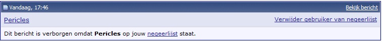 ![]() Als je iemand op de negeerlijst zet zouden zijn of haar dubbelnick's er ook ineens moeten opvliegen ...