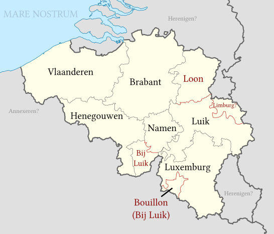 De rode lijntjes betreffen het wel of niet opbreken van Luik. |