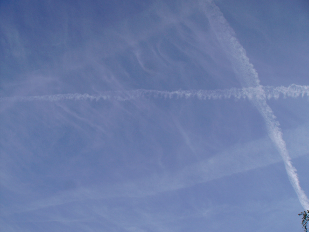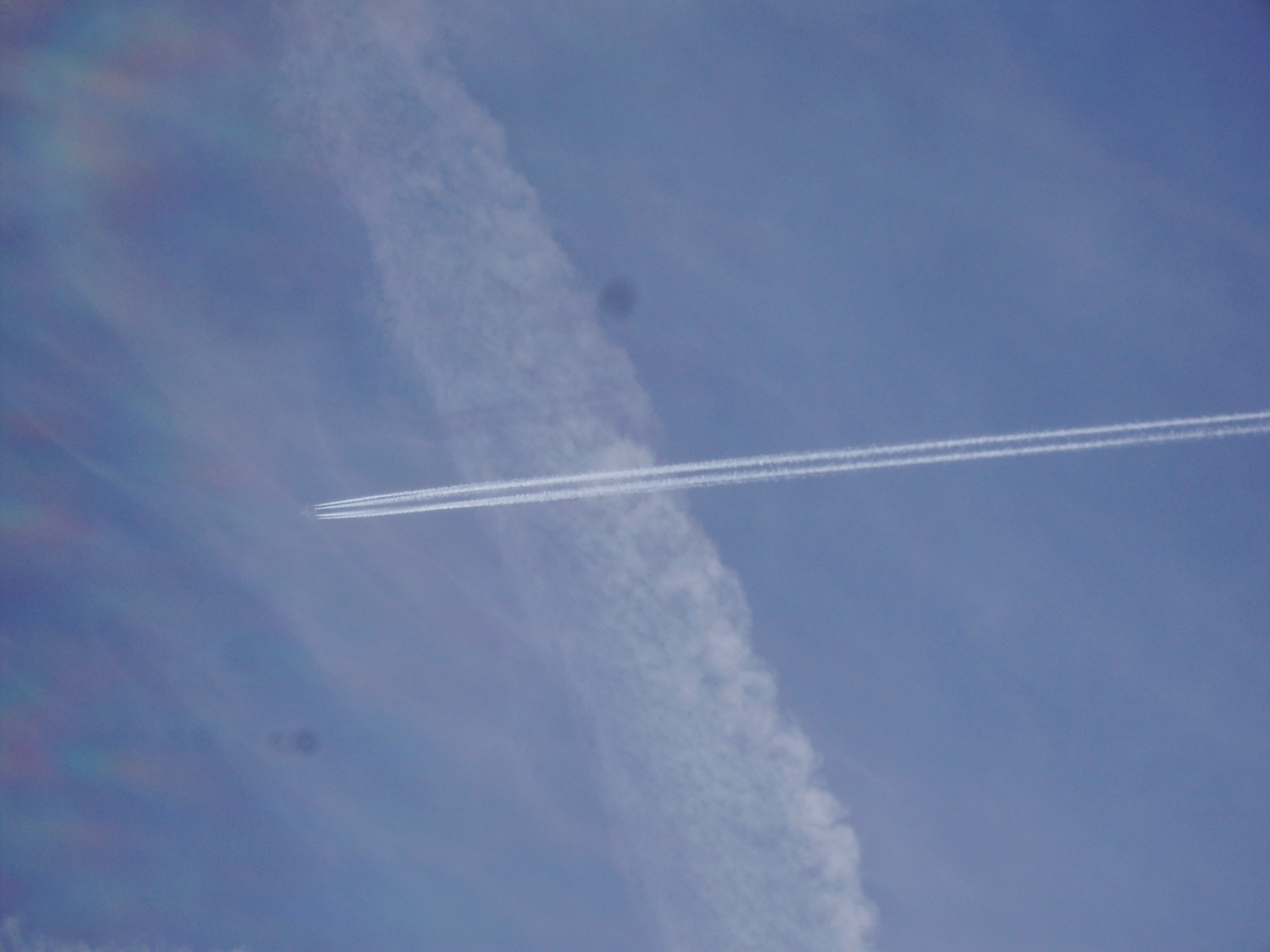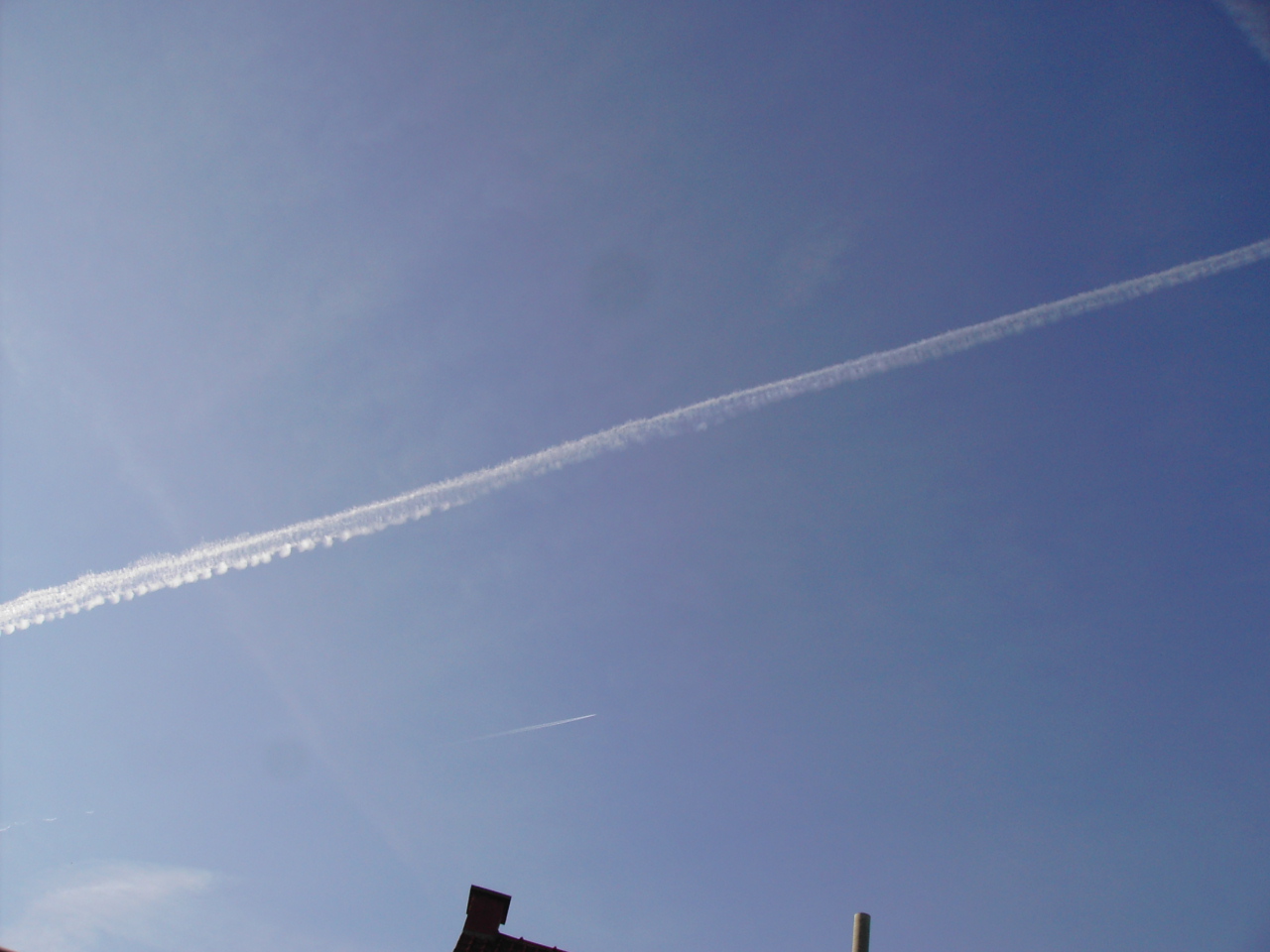 Alle chemtrails dat ik vandaag getrokken heb zijn afkomstig van "passagiers"vliegtuigen. Ik denk dat ik maar één letterlijk passagiersvliegtuig getrokken heb vandaag. Ik heb er ook al gezien ZONDER contrail, gewoon niets achter hun. Zie foto