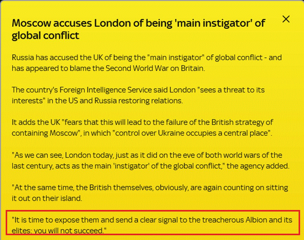 ![]() Rusland laat weten dat de Britten de belangrijkste aanstoker zijn van het conflict in Oekraïne, het globale conflict.