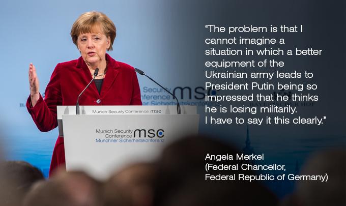 Een mogelijke oplossing voor de crisis in Oekrainë wordt hierbij door Merkel zelf gekoppeld aan een groots nieuw project, 'Eurazië van Lissabon tot Vladivostok'. Uiteraard is de VS geen partij tijdens de onderhandelingen welke tot zulk akkoord zouden kunnen leiden. Onlangs in Davos: ![]() "Es wäre wünschenswert, auf der Basis des Minsker Abkommens erst einmal eine gewisse Stabilität herzustellen und dann in einem größeren Rahmen zwischen der Europäischen Union und der Eurasischen Union zu überlegen, welche Kooperationsmöglichkeiten haben wir in einem Wirtschaftsraum, der ja selbst von Präsident Putin benannt wurde, von Wladiwostok bis Lissabon, zu kooperieren. Das muss ja unser Ziel sein. Ich hoffe, dass sich da Möglichkeiten ergeben. Darunter würde sich dann vielleicht auch das Thema der Assoziierungsschwierigkeiten zwischen der EU und der Ukraine lösen lassen. Und ich will ausdrücklich sagen: Dazu sind wir bereit. Aber die Voraussetzung ist, dass wir erst einmal einen Waffenstillstand haben, dass wir eine Rückgewinnung der Kontrolle für die Ukraine an der russisch-ukrainischen Grenze bekommen. Und dieser Prozess muss jetzt endlich eingeleitet werden. Es hat schon viel zu viele Menschenleben gekostet." Lees ook: sueddeutsche.de - Merkel und Gabriel machen Putin ein Angebot