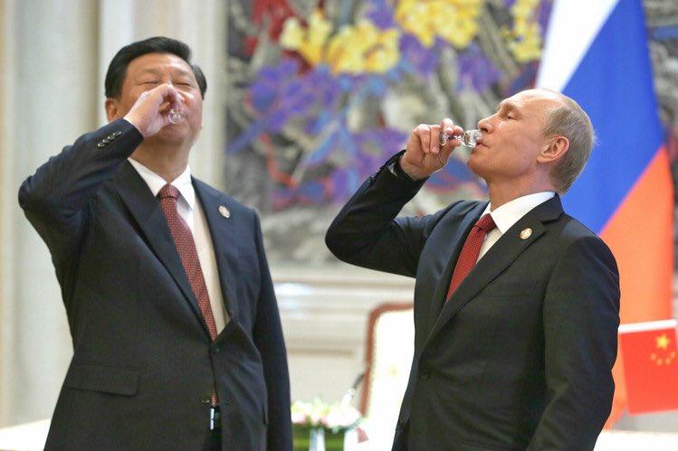 Een chaotisch afbrokkelende G7. Op hetzelfde moment een glaasje russische vodka ter gelegenheid van de top van de SCO, in China. ![]() ![]()