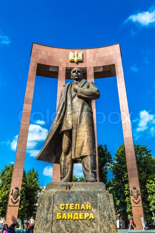![]() Monumenten voor Bandera in Oekraïne, ironisch genoeg in zuivere Sovjet-stijl...