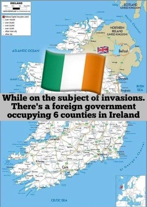 Noord Ierland is echt wel wat ingewikkelder dan dat. Ik denk niet dat een meerderheid van de Noord-Ieren bij Ierland wil. Ik was vroeger ook voor één Ierland. 'Allé hoe kan dat nu toch, één eiland splitsen.' Ik dacht dat het enkel een de religieuze kwestie betrof (protestanten tegen katholieken) en ik kan weinig begrip opbrengen voor dat argument. Maar ik sprak ooit met Noord-Ieren en las erover en de scheiding gaat veel dieper dan enkel het religieuze. Het gaat over volksverhuizingen uit lang vervlogen tijden. Er zijn genetische verschillen tussen de Ieren in het noorden en de andere Ieren en daaruit voortvloeiende culturele verschillen die dieper liggen en verder gaan dan de verschillen tussen Walen en Vlamingen. Het is dus zeker geen zaak van Britten die een deel van Ierland bezet houden nadat ze het eerst ooit helemaal hadden veroverd. Het zijn de Noord-Ieren die niet bij Ierland willen.