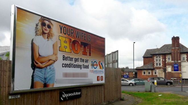The air conditioning advert - described by an academic as "plain sexist" - features the line: "Your wife is hot!"