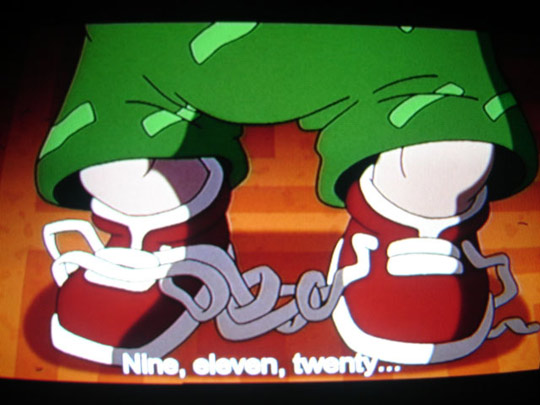 1ste is Independance Day;2de is King-Kong (denk ik) ;3de is Rugrats (hij telt mee en zegt luidop nine,eleven,twenty).