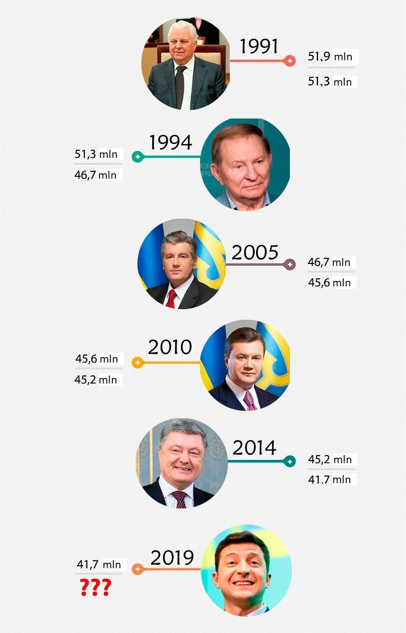 Opvallend: vanaf 1991 tot aan het einde van de ambtstermijn van Yanukovich in 2014 was er al een daling van het bevolkingsaantal van 51,9 miljoen naar 45,2 miljoen (minus 13%).