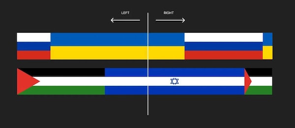 Rechts van hetzelfde, een deel ziet de Joden als overheersers in de schaduw maar het zijn wel de enige die echt vechten tegen barbaarse moslim overheersing. In feite moeten ze die nu volop steunen. Idem voor de Amerikanen, in de ene oorlog steunen we die, in de andere zijn we tegenstanders. Wat een gedoe, ze zijn gewoon oorlogszuchtig, dat is alles. |