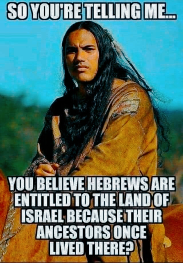 het komt toch op hetzelfde neer de cowboys bezetten en pikten het indianenland In de 7de eeuw wilden de Joden hun land terug. Dáár begon toen de ellende De moslims waren toen de bezetters. In de 20ste eeuw waren de Holocaust en de gevolgen ervan, de vernieuwde eis v.d. Joden over een eigen land. je moet een kat een kat durven noemen maar er zijn geen indianen gevlucht uit de USA en vervolgd of uitgeroeid in de rest van de wereld |