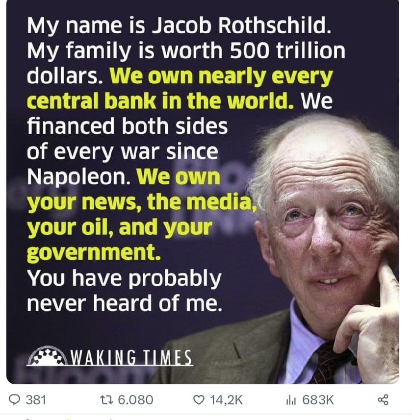 De Rothschilds organiserden sinds honderden jaren oorlogen, ... net omdat ze er zo veel geld aan verdienen. Ze begonnen ermee ongeveer ten tijde van Napoleon. Ze controleren met dat doel ook de Main Stream Media, vele social media apps, ... Ik heb na het zien van die 12 uur een aantal zaken wat moeten bijstellen, aanpassen, ... zo bijvoorbeeld de oorzaak van enorme vluchtelingenstroom die we het laatste decennium in Europa meemaken bijvoorbeeld. GIVE IT A TRY And come back with feedback