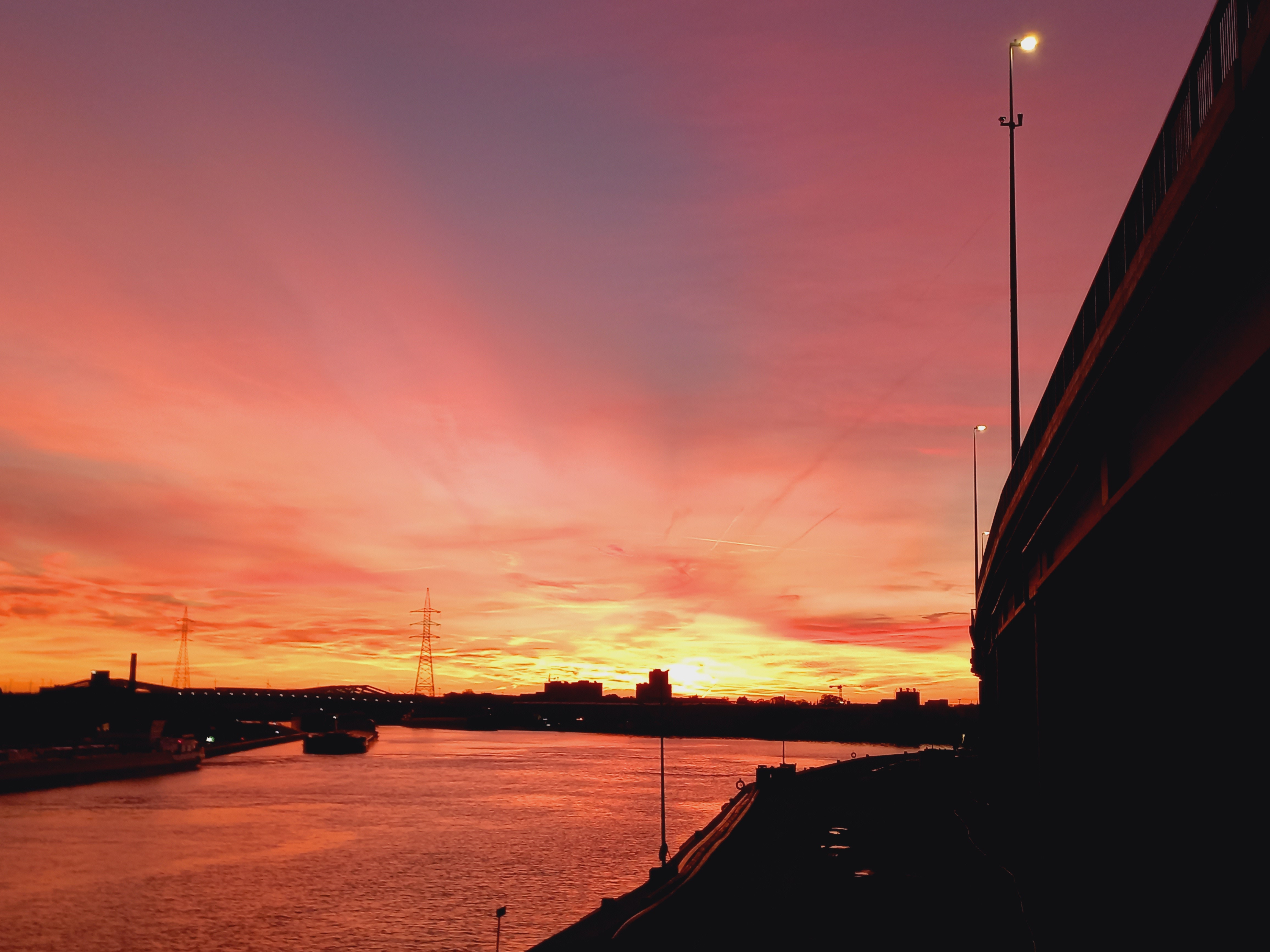 Ik zal wel genieten van zonsop- en ondergangen. Die lichtshows zeggen me eigenlijk weinig. Ook vuurwerk op oudejaar heb ik al te dikwijls gezien om me nog aan te grijpen. Maar zonsop- en ondergangen in combinatie met onze luchtvervuiling kunnen me nog steeds versteld doen staan. Enkele dagen geleden getrokken. Daar kan geen lichtshow of vuurwerk tegen op.