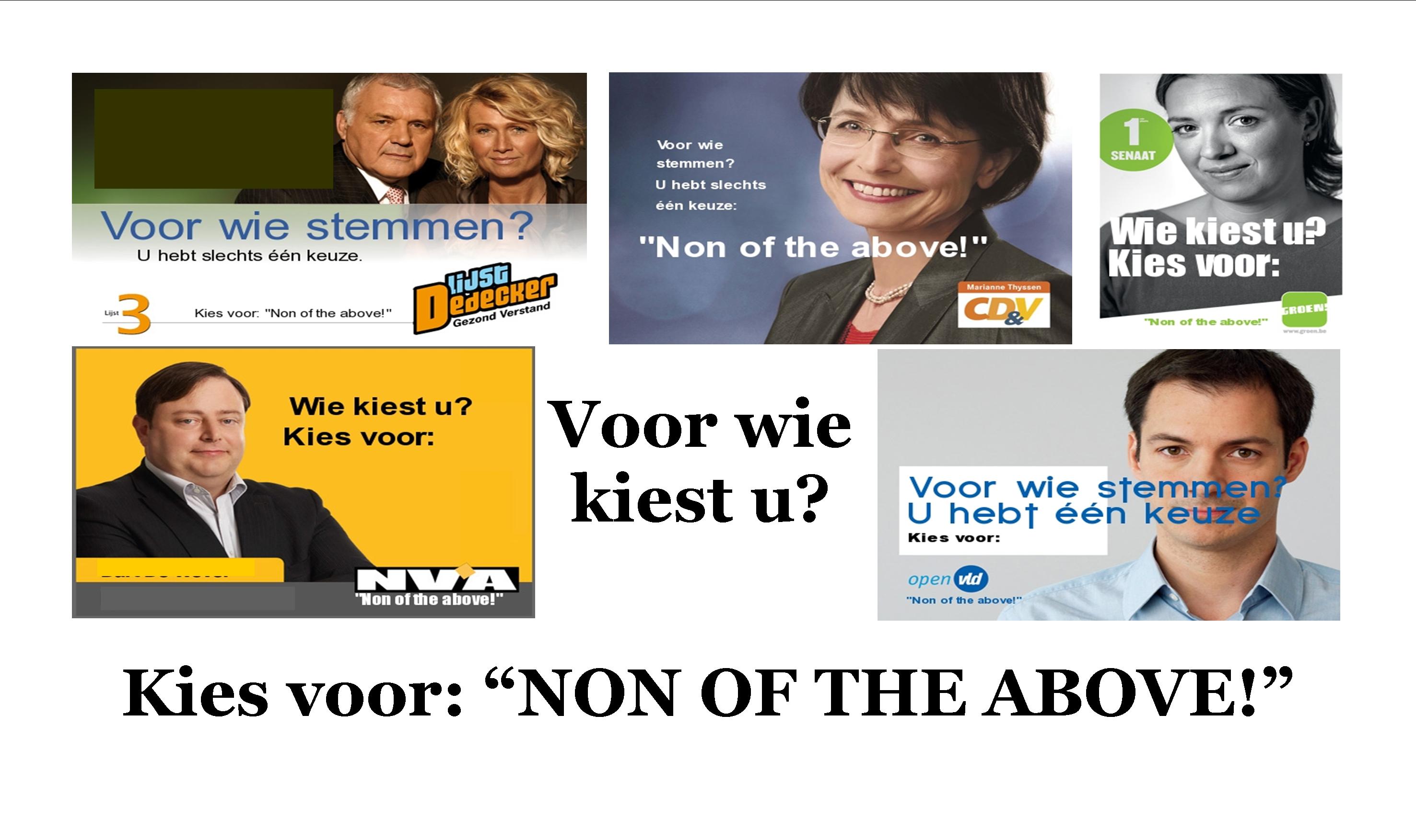 Jammer dat we op 13 juni niet zoals in de film "Brewsters Millions" een bolletje rood kunnen inkleuren op onze stembrief met de kopstem "Non of the Above"