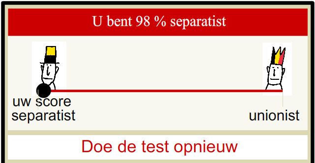 Exclusief in Vlaanderen: Al wie da ni springt, al wie da ni springt is N-VA (Brünoke's kleuterbende) Exclusief in Brussel: Brussel kan wel een paar honderd miljoen Euro missen (Guy Vanhengel, PS (ex-Ø-VLD)) Exclusief in Wallonië: wij keurden de pestbelastingen goed want ze troffen toch vooral de Vlamingen (Didier Reynders, MR) |