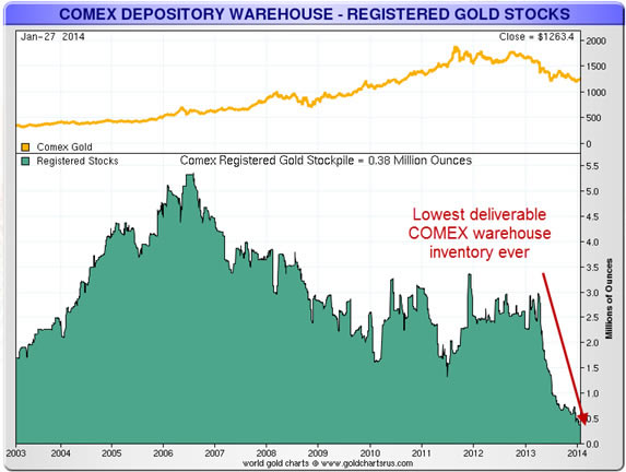 In je cijfers daalt "registered" met >50%. Dat is Au dat opvraagbaar is. (fig.: evolutie "registered" bij de papierwinkel van comex) BRON Verderop in dat artikel: So why can't Germany get its gold? Explanations of having to melt down existing gold and recast it just don't make sense. The most logical conclusion, and the one I've come to, is that the United States simply doesn't have the gold it says it has — neither Germany's nor its own. Of course, the US government isn't going to admit that there's a problem, but I say there is.