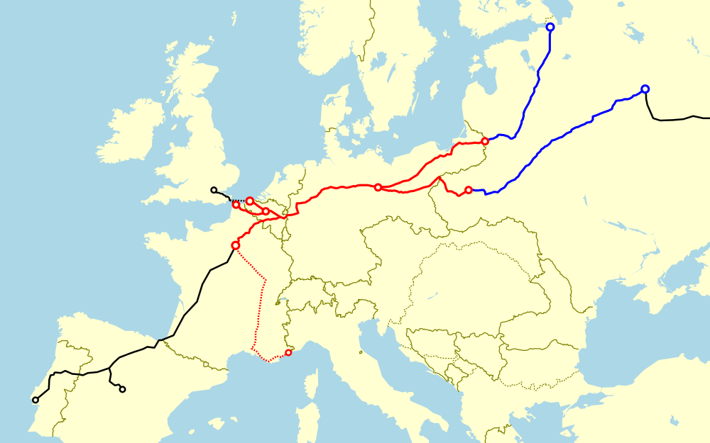 De As Berlijn - Moskou kan en zal getrokken worden. De export van Duitsland verloopt steeds meer in de richting van het Oosten. De Duitse industrie stort in elkaar zonder die markten in het Oosten. Heel exportgericht. Duitse bedrijven zijn welkom in Rusland. Bedrijven uit de VS veel minder.