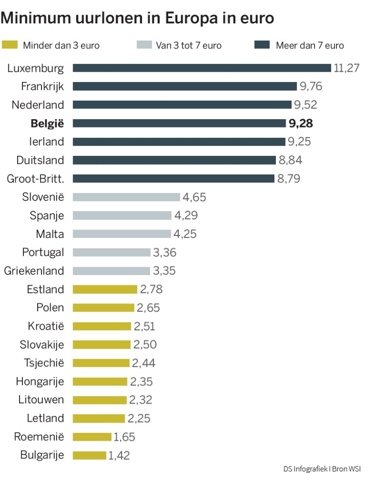 Ik las net in De Standaard over de minimum-uurlonen in de EU.