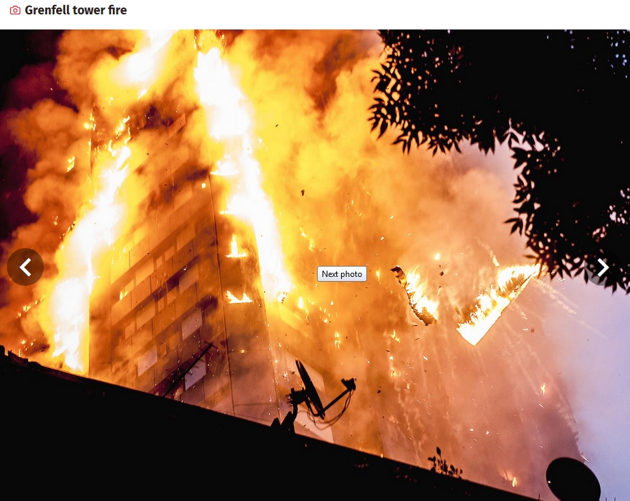 "De oorzaak van de brand is nog onbekend, maar bewoners getuigden dat een keukenbrand via het raam de nieuwe gevelbekleding van het gebouw in brand stak. Via die bekleding zou het vuur zich razendsnel naar boven hebben verspreid." |