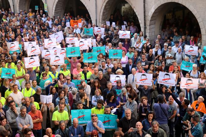Lang zullen die niet meer vastzitten . http://www.lavanguardia.com/local/gi...z-cuixart.html Centenares de ciudadanos han protestado este mediod�*a delante de sus centros de trabajo en calles y plazas contra la prisión incondicional para Jordi S�*nchez y Jordi Cuixart |