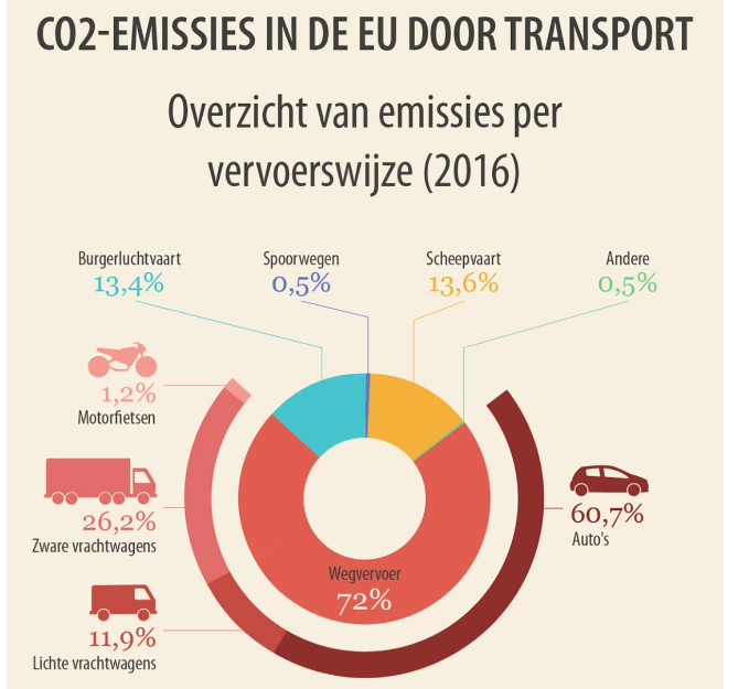Transport is verantwoordelijk voor bijna 30% van de totale CO2-uitstoot van de EU, waarvan 72% afkomstig is van wegtransport. Valt nog wel mee die scheepvaart hoor. Maar vooral deze is relevant lijkt me: De enige tak waar het erger en erger wordt is transport... bron