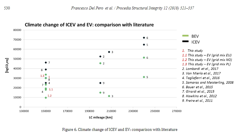 Als men vandaag een EV koopt gaat die pakweg tot 2030 zeker mee. Dan moet je ook de waarschijnlijk gemiddelde EU-stroommix nemen van die 10 jaar die komen. En niet die van 2-3 jaar geleden waar er gegevens van zijn. De EV-constructeurs geven al minstens 160.000 km garantie op hun batterijpacks, zelfs op de kleinere... (als ik me niet vergis) Citaat: