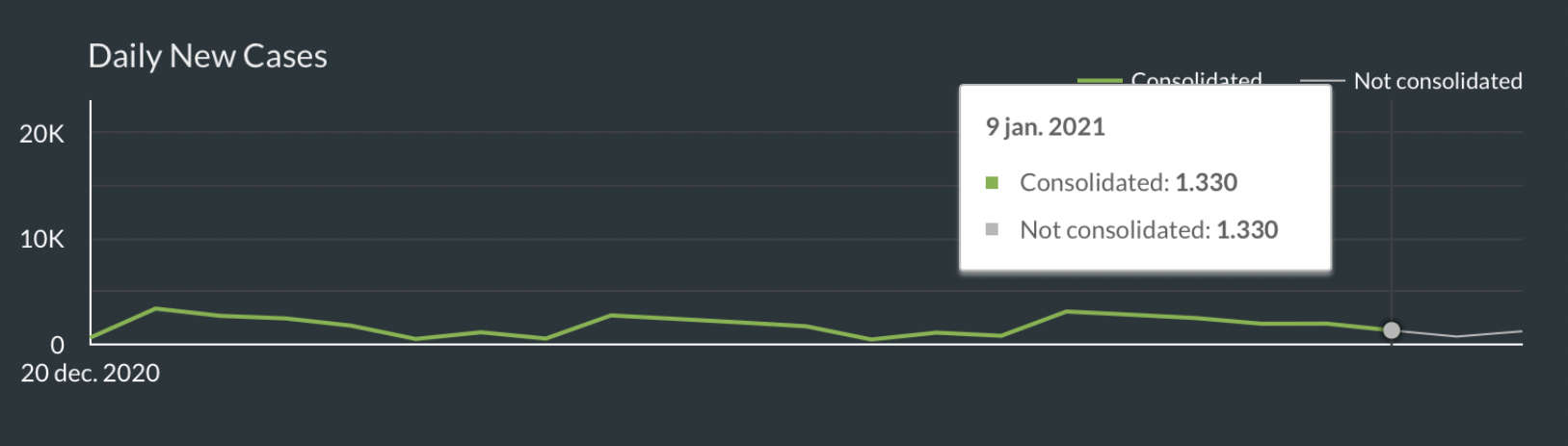 Ja het is echt een domino effect naar beneden. Hieronder de cases en de testen onder mekaar. Er is nergens een stijging van meerdere dagen achter elkaar te bespeuren.